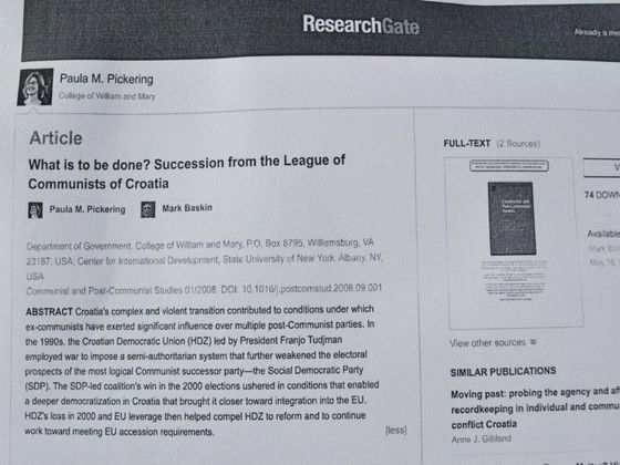 U raspravama te vrste, a ne dovodeći u pitanje poruke Rezolucije EP-a o osudi totalitarističkih sustava, osobito komunističkog, jako je bitna okolnost vjerodostojnost adrese s koje se iniciraju rečena razmatranja. Nije tome davno odkako su američki znanstvenici Paula M. Pickering i Mark Baskin, profesori i suradnici Sveučilišta Albany (New York), specijalisti za Balkan, u svom radu (2008.) o zbivanjima u postkomunističkim državama nastalim na prostorima bivše Jugoslavije posebno istraživali naslijeđe nekadašnjeg Saveza komunista Hrvatske (SKH).