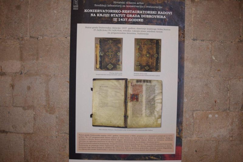 Statut Grada Dubrovnika nastao 1437., restauriran je u HDA-u, prepisani je i dopunjeni primjerak iz 1272. godine. Na 127 pergamenskih listova ispisan je tekst tintom na bazi željeza te je ukrašen inicijalima. Knjiga Statuta je uvezana u drvene korice presvučene kožom bogato ukrašenom slijepim tiskom. Knjiga je dodatno ukrašena metalnim dekoracijama na prednjoj i stražnjoj strani korica, a na petoj stranici nalazi se Ugrinovićeva iluminacija koja prikazuje svetog Vlaha, zaštitnika Grada Dubrovnika, kazala je voditeljica Središnjeg laboratorija za konzervaciju i restauraciju HDA Andreja Dragojević.