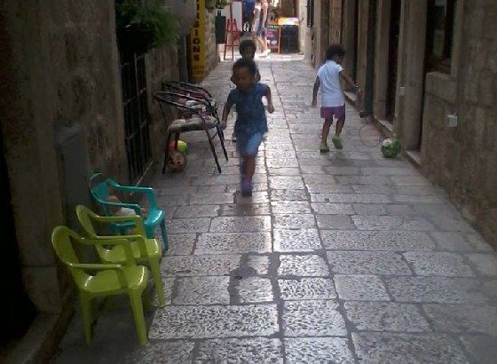 Tinu u Gradu ne možete, faliti. Gospođa koja gdje god ide sa sobom vodi troje djece. Dvije kćeri i sin uskoro će napuniti četiri godine, a u Čubranovićevoj se svako jutro i kasno popodne čuju zvukovi dječje igre. Stolice, romobili, igračke, naslonjeni uza kamene zidove daju ovoj ulici onaj ugođaj koji je drugdje davno zaboravljen.